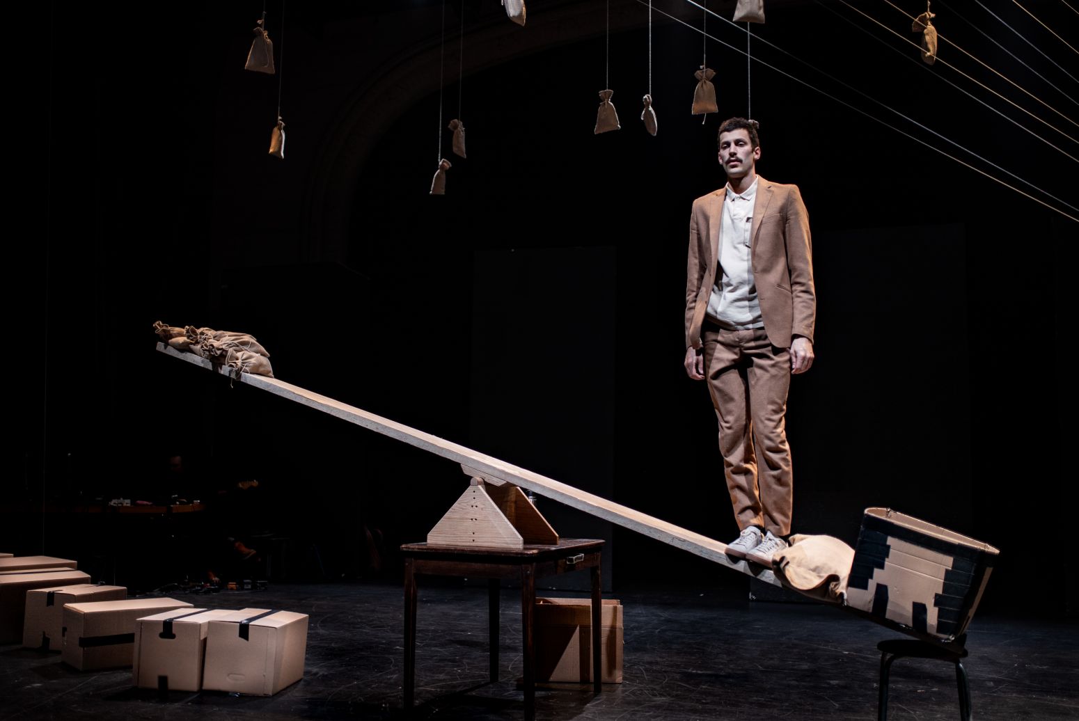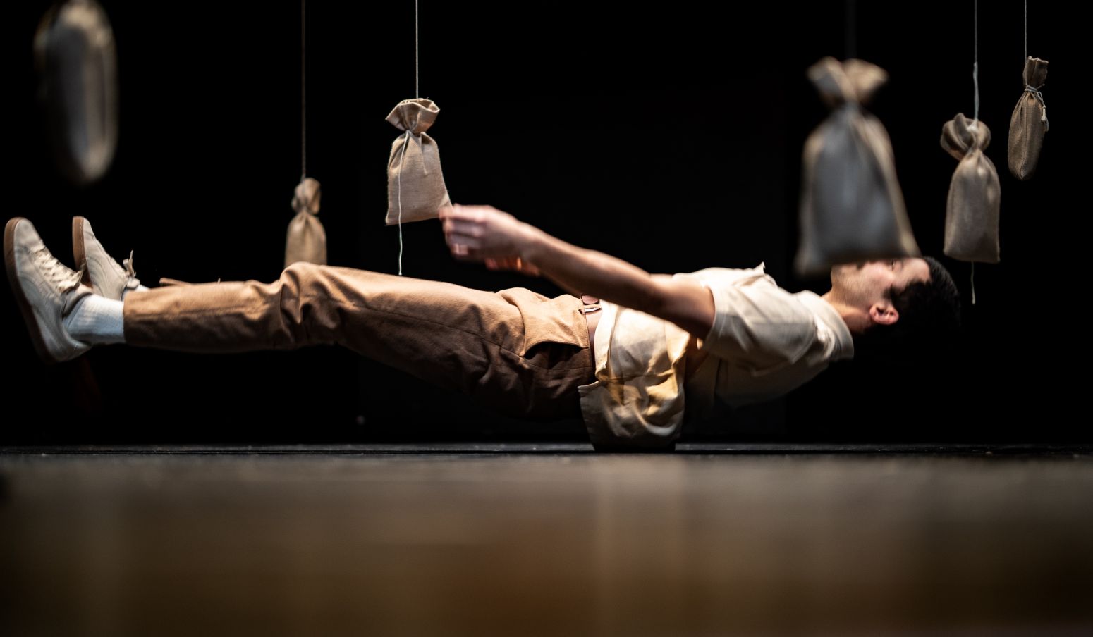 Une pièce entre danse, théâtre et cirque, pour embrasser les promesses d’un incertain devenu bien trop précieux pour être laissé aux mains du hasard.